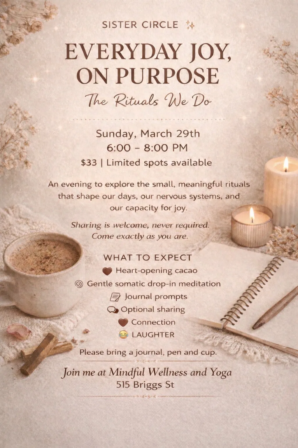 Mindful Yoga & Wellness came into my life in a way I didn’t expect,but immediately knew I couldn’t ignore. What started as a personal commitment to slowing down, listening to my body, and caring for my nervous system eventually became a deeper calling to create a space where others could do the same.
